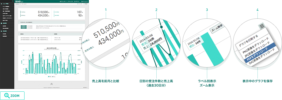 新規の注文や在庫状況も、管理画面で素早く分かるダッシュボードが、スムーズな運営を手助けする秘密。
