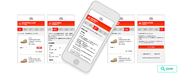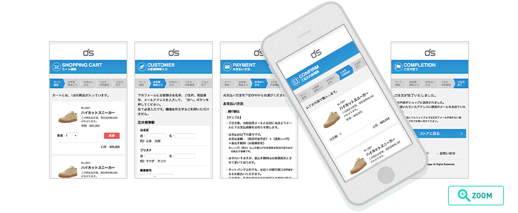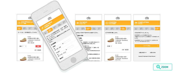 決済の流れも購入内容もわかりやすいスマホ専用のデザイン。