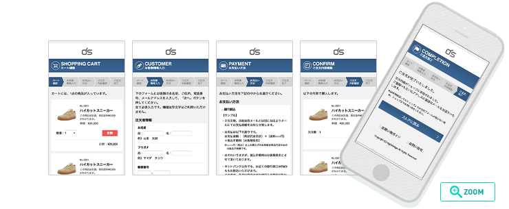 BiNDカートは、スマホでのお買い物ならスマホに最適なサイズで自動表示して、親切なショップが運営できます。