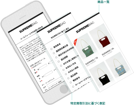 商品の購入ページのみならず、特商法に関するページまで。必要なサイト構成がまるごと手に入るので、初めてでも大丈夫。