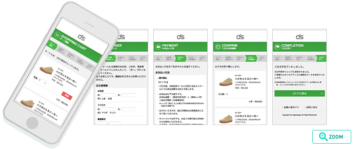 BiNDカートは、スマホでのお買い物ならスマホに最適なサイズで自動表示して、親切なショップが運営できます。