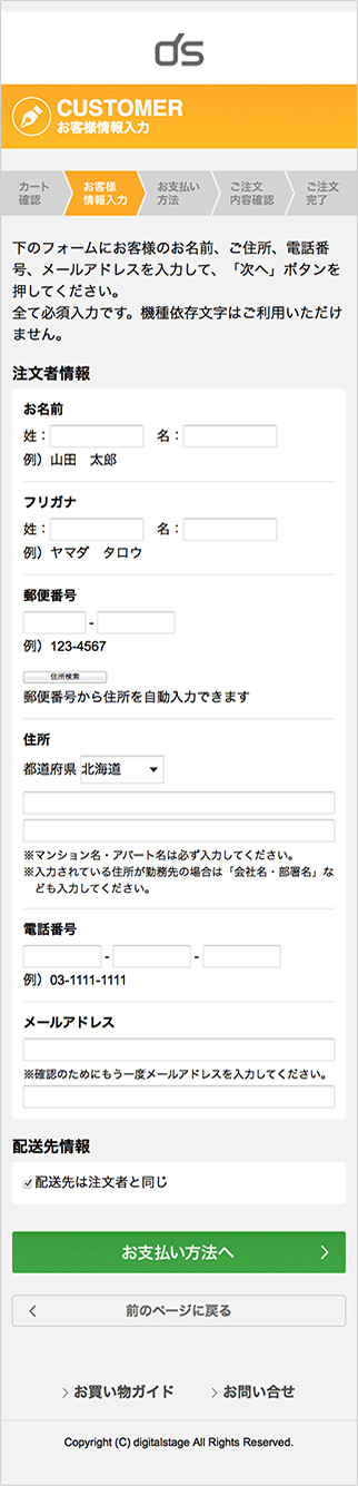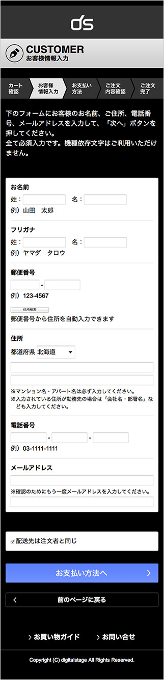 宛名や配送先を入力したり、支払方法を選択したり。決済画面は、お客様にもっとも手間を取らせてしまうところ。