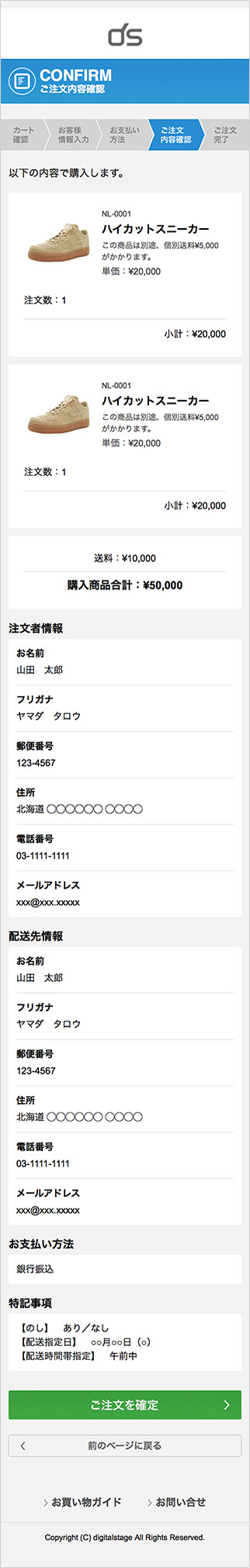 決済の流れも購入内容もわかりやすいスマホ専用のデザイン。